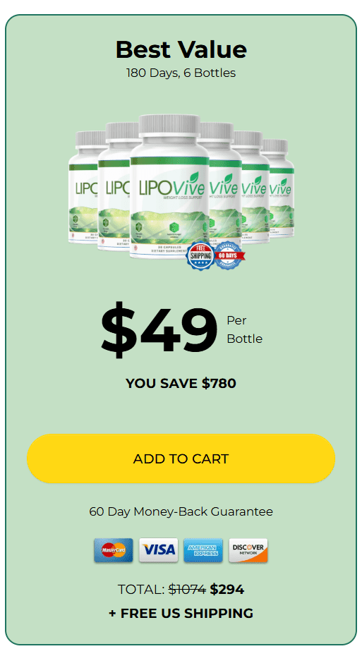 At this moment you can order LipoVive supplement for 72% OFF + FREE US Shipping. This is a Limited-Time Offer and it won’t be available for long.