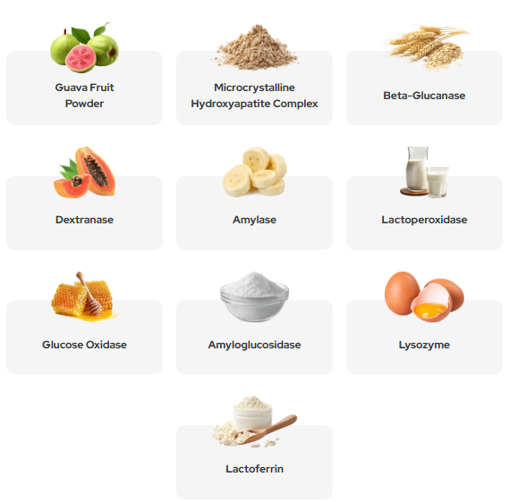 • Formulated with ingredients linked to microbiome balance and enamel strengthening